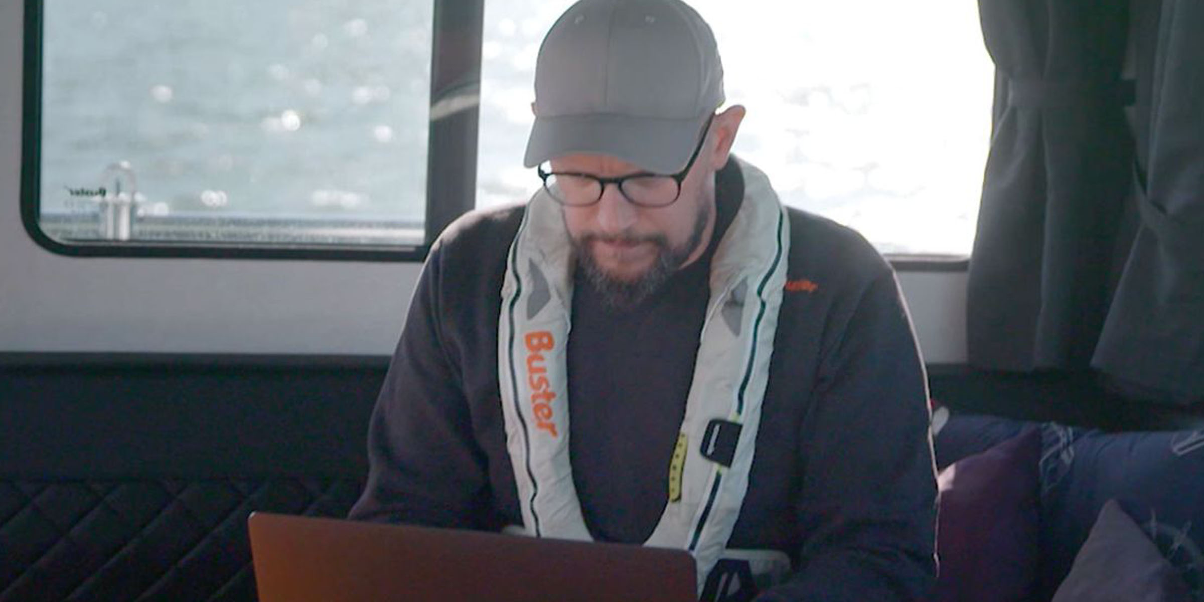 ”Buster Q:n tukiaseman avulla voin tehdä kotitoimistosta venetoimiston, aivan saariston reuna-alueille asti. Täällä voin ankkuroitua, vastata sähköposteihin ja käydä uimassa – nauttia työn ja luonnon parhaista puolista samaan aikaan. Mutta yhteyden on toimittava, jotta tärkeisiin sähköposteihin voi vastata.”