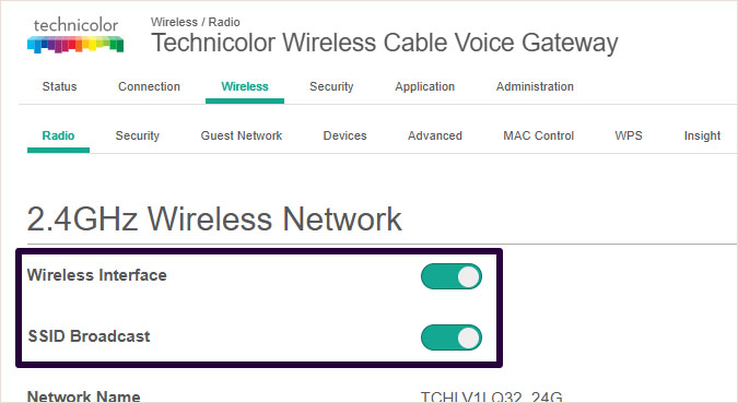 Technicolor CGA4233 -kaapelimodeemissa on 2,4 GHz ja 5 GHz langattomat verkot, joilla on oletuksena käytössä yhteinen nimi (SSID). Päätelaite (läppäri, puhelin, tabletti jne.) pyrkii automaattisesti valitsemaan käyttöön parhaiten toimivan verkon. Joskus automaattinen valinta kuitenkaan ei ole paras, koska 2,4 GHz ja 5 GHz taajuuksien toiminnassa on eroja. Esim. 2,4 GHz taajuuden kantavuus on parempi, kun taas 5 GHz verkko voi tarjota paremman nopeuden. Jos langaton yhteys ei toimi oletusasetuksilla, kokeile eri taajuuksia.