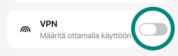 - VPN on nyt käytössä! Voit kytkeä VPN-yhteyden päälle tai pois VPN-kohdan liukukytkimestä.
