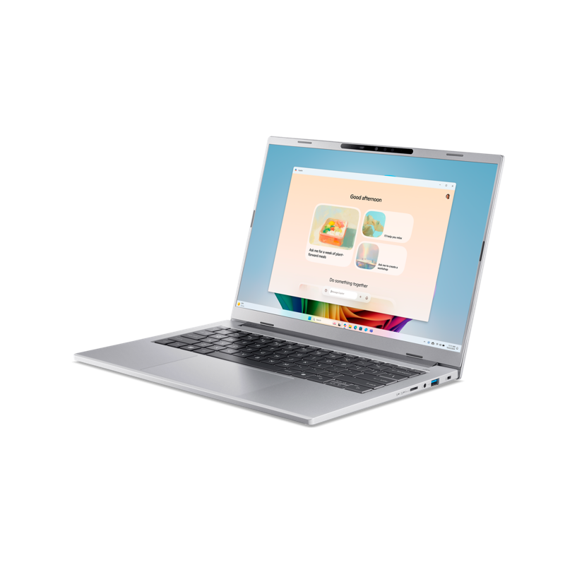 Aspire 14 AI on varustettu kestävällä, ohuella ja kevyellä alumiinirungolla, joka edustaa modernia muotoilua. 180 asteen taittomekanismi mahdollistaa monipuolisen käytön – olipa kyse työstä, opiskelusta tai luovasta tekemisestä, onnistuu se missä tahansa.