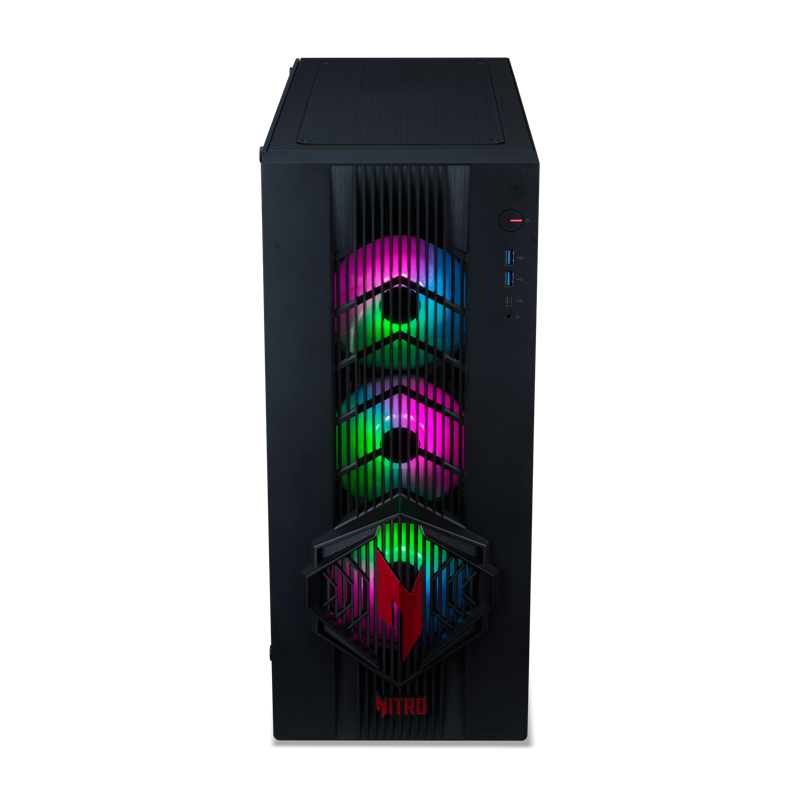 Acer Nitro 70 selättää jokaisen taistelun tehokkaalla AMD Ryzen 7 9800X3D -prosessorilla, NVIDIA® GeForce RTX™ 5080 -näytönohjaimella (16 Gt GDDR7 VRAM), 1024 Gt PCIe Gen4 SSD -tallennustilalla ja edistyneellä Acer Nitro CycloneX 360 -jäähdytysjärjestelmällä, joka on sijoitettu tilavaan 45 litran runkoon.
