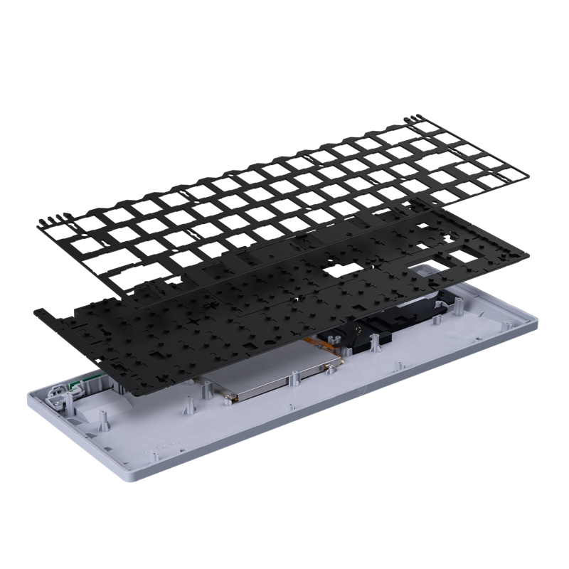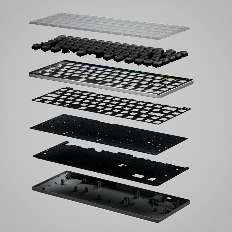 Kaksi kerrosta integroitua silikonivaahtoa vaimentaa pinging-ääniä ja kaikuja, mikä parantaa näppäinten painallusakustiikkaa.