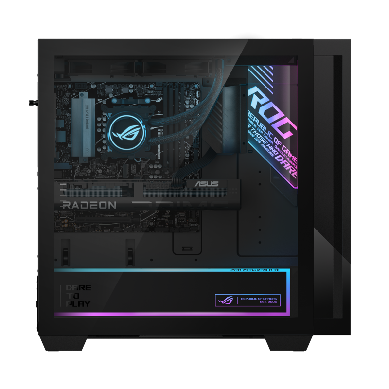AMD Ryzen 7 9800X3D -suorittimen ja AMD Radeon RX 9070 XT 16GB Prime -näytönohjaimen avulla tämä pöytäkone on suunniteltu suorituskykyiseen pelaamiseen. G700:n 58 litran tilavuuden ansiosta siihen mahtuu helposti kolmen korttipaikan näytönohjain, täysikokoinen 850 W:n virtalähde, 240 mm:n AIO-nestejäähdytin, ja koska G700:n rungossa on runsaasti tilaa neljälle mukana toimitetulle rungon tuulettimelle ja ylimääräisille jäähdyttimien kiinnikkeille, se tarjoaa poikkeuksellisen hyvän jäähdytystehon. ROG G700 on loistava vaihtoehto niille, jotka haluavat suorituskykyisen työpöytäpeli-PC:n ilman kokoonpanon ja asennuksen hankaluutta.