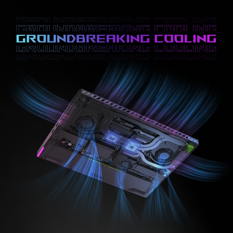Jotta näin tehokkaat komponentit mahtuvat mukaan, sekä Strix G18:n runko, että emolevy on suunniteltu niin, että niihin mahtuu täysleveä jäähdytyselementtimme, jonka lamellit on siirretty entistä lähemmäksi tuulettimien poistoaukkoja tehokkaamman jäähdytyksen varmistamiseksi. Täysleveä jäähdytyselementti koostuu kolmesta eri osasta, jotka ympäröivät emolevyä tiiviisti sijoitetuilla lamelleilla, joiden kokonaispinta-ala on 187 156 mm². Tämä muotoilu maksimoi lämpimän ilman käytettävissä olevan poistumisreitin ja lisää huomattavasti kokonaisilmavirtaa. Useimmissa pelikannettavissa on kahden tuulettimen jäähdytysjärjestelmä, mutta G18:n suorituskykyä on parannettu entisestään kolmannella tuulettimella, joka auttaa pitämään näytönohjaimen ja VRAM-muistin viileänä. Yhdessä seitsemän tehokkaan lämpöputken ja näytönohjaimen yhteydessä käytettävän Conductonaut Extreme -nestemäisen metallin kanssa G18:n jäähdytysjärjestelmä on verrattavissa insinööritaidon ihmeeseen.