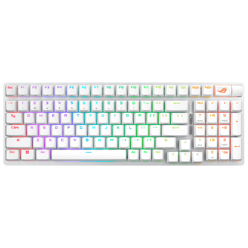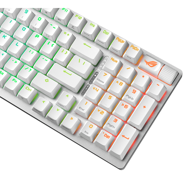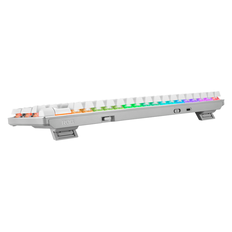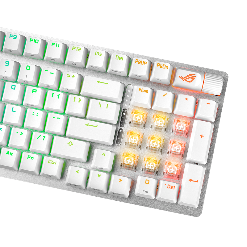 - Hot-swap ROG NX Snow -kytkimet ja kehittynyt äänenvaimennus – valmiiksi voidellut mekaaniset kytkimet yhdistettynä silikonivaahtomuovirakenteeseen ja kytkinvaimennustyynyihin takaa sujuvan, tarkkuutta tukevan ja miellyttävän kirjoitustuntuman.