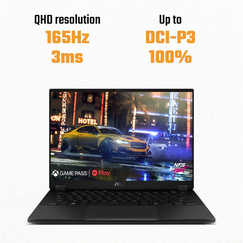 - 14" näyttö 2,5K-tarkkuudella, 165 Hz virkistystaajuudella ja 100% sRGB-väriavaruudella täyttää villeimmätkin unelmat