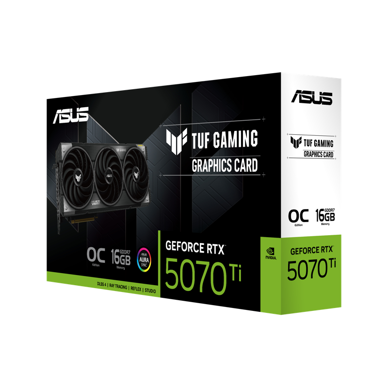 - Lukitse, lataa ja hallitse TUF Gaming GeForce RTX 5070 Ti:llä, joka on suunniteltu kestämään kovimmatkin olosuhteet ja tarjoamaan vertaansa vailla olevaa suorituskykyä