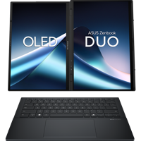 ASUS Zenbook DUO on vallankumouksellinen kaksinäyttökannettava, jossa on kaksi täysikokoista OLED-kosketusnäyttöä, irrotettava täysikokoinen näppäimistö ja sisäänrakennettu jalusta - yhdistämällä asiantuntevasti monitehtäväisen monipuolisuuden ja erinomaisen liikkuvuuden. Kahdella 14-tuumaisella FHD OLED -näytöllä voit laajentaa työtilasi hetkessä jopa 19,8 tuuman kokoiseksi. Erinomainen suorituskyky on taattu jopa tekoälyllä varustetulla Intel Core Ultra 7 suorittimella (Series 2) ja 32 GB LPDDR5x-muistilla sekä 1 TB PCIe 4.0 SSD-levyllä. Yhdistettynä omaan älykkääseen ohjelmistoon, intuitiiviseen eleohjaukseen ja parannettuun 75 Wh:n akkuun, helppokäyttöinen Zenbook DUO maksimoi tuottavuuden ilman mitään hässäkkää.