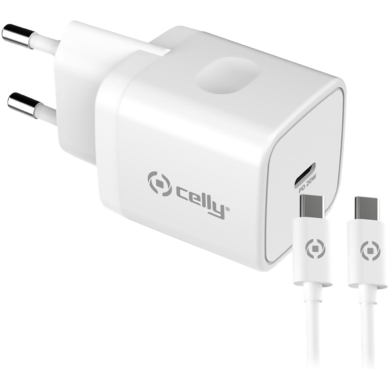 Celly USB-C 20 W -laturi + USB-C to USB-C -kaapeli
