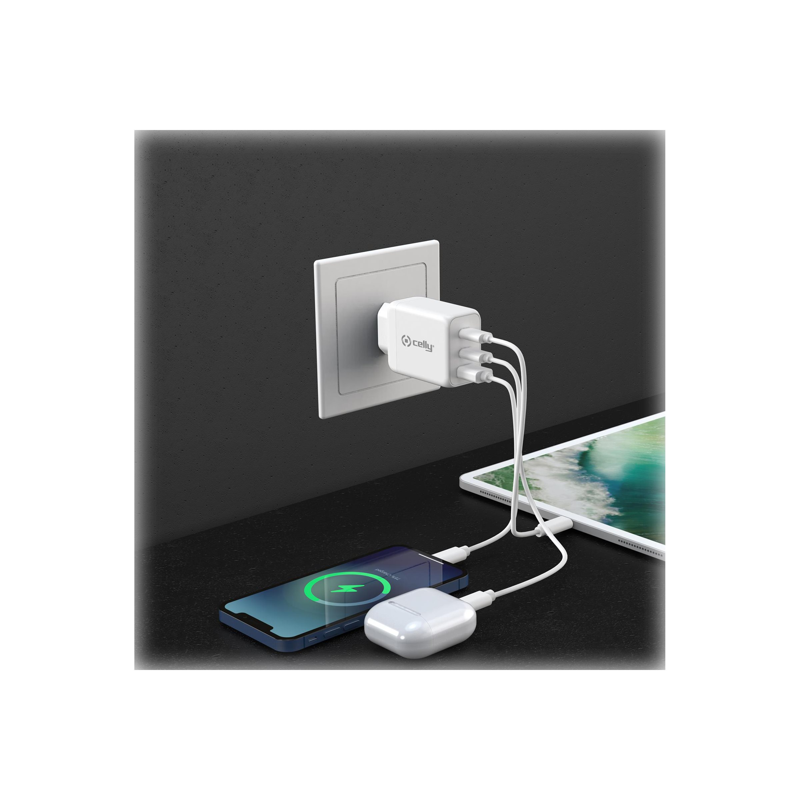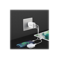 Kolmen portin käyttö: 20 W (USB-C), 20 W (USB-C) & 15 W (USB-A)