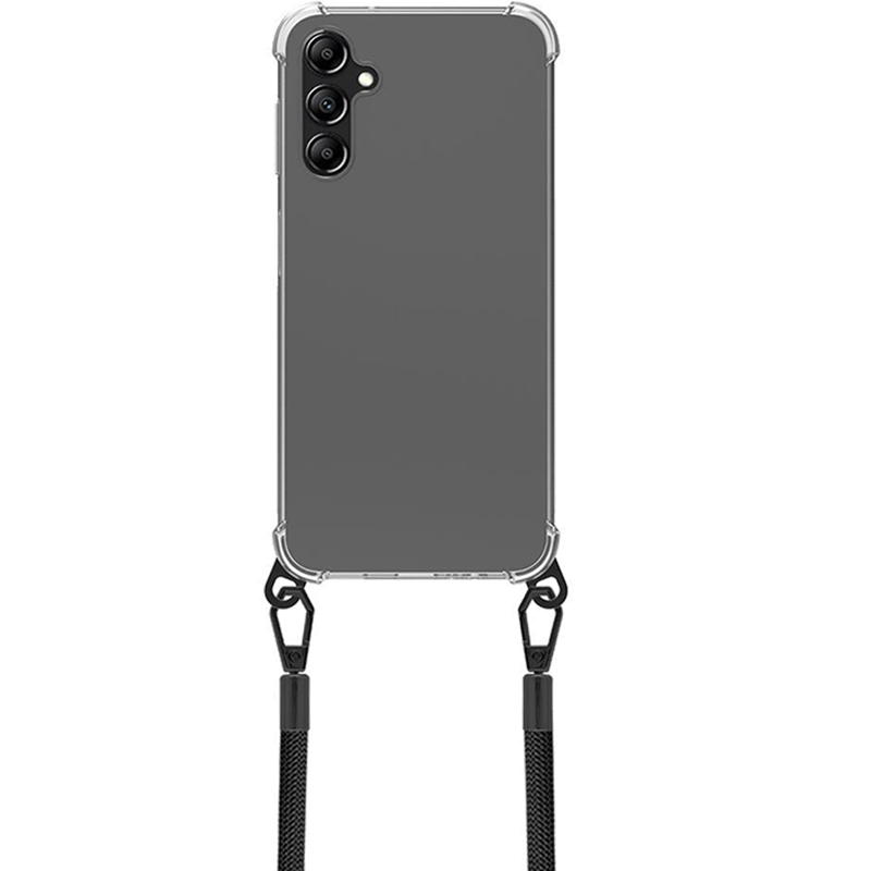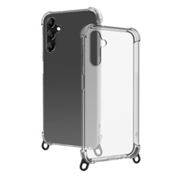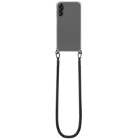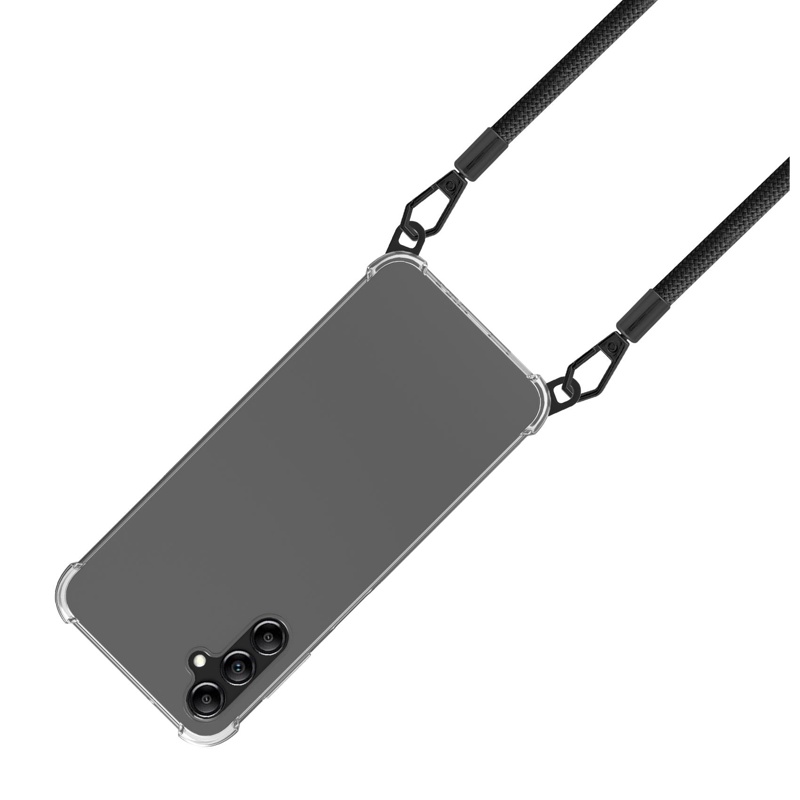 - Läpinäkyvä TPU-kuori koukuilla ja nauhalla – puhelin kulkee mukanasi vaivatta