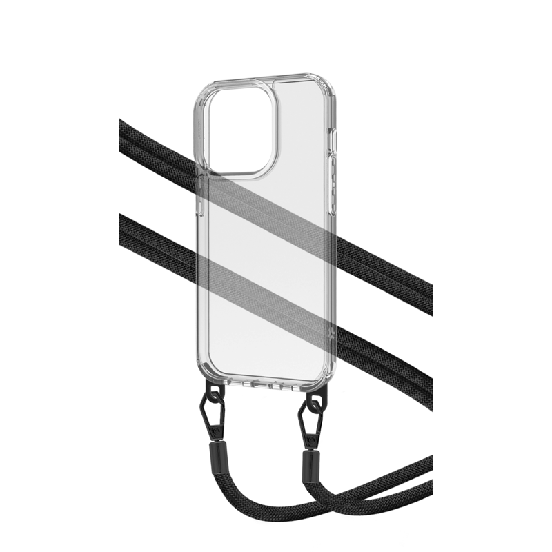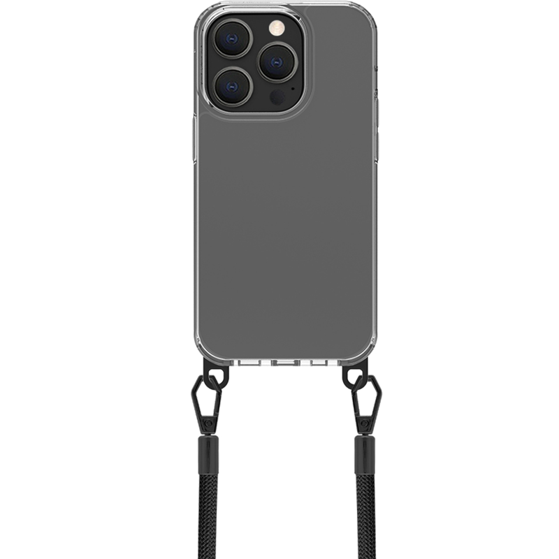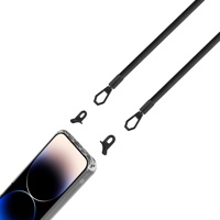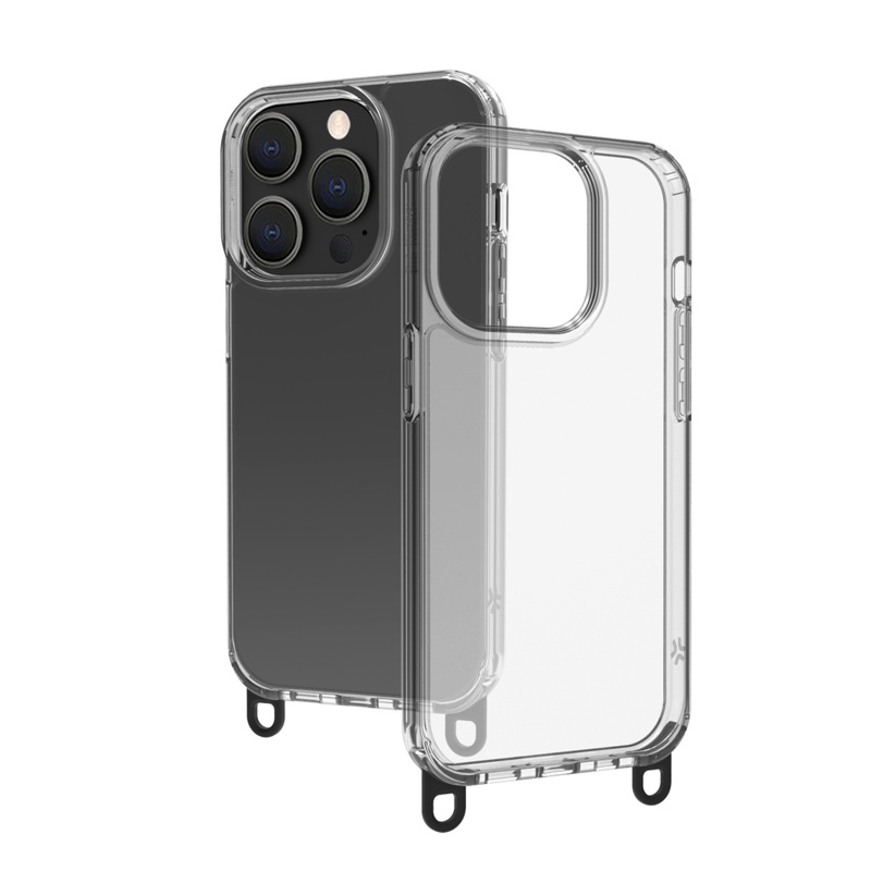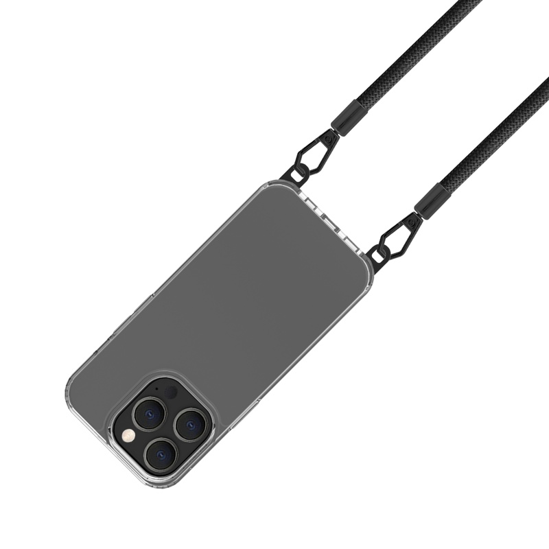 - Läpinäkyvä TPU-kuori koukuilla ja nauhalla – puhelin kulkee mukanasi vaivatta