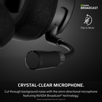 - Jopa 70 h akunkesto, mukavat muistivaahtokorvatyynyt ja NVIDIA Broadcast -mikrofoni selkeään viestintään