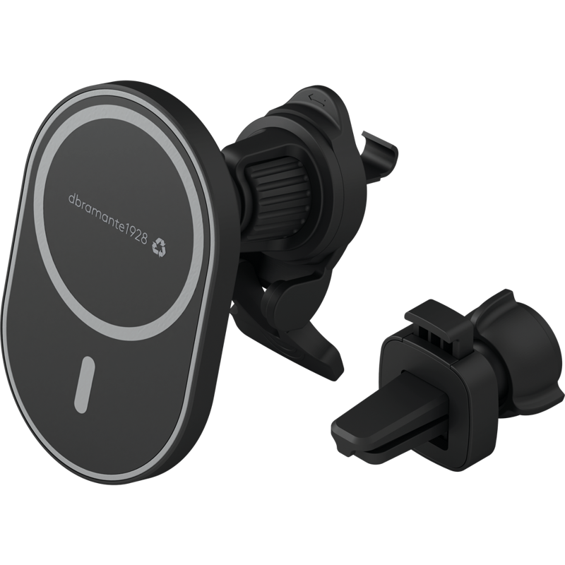 dbramante1928 re-charge MagSafe -autoteline on käytännöllinen autolaturi ja pidike. Se valmistettu GRS-sertifioidusta kierrätysmuovista ja on kierrätettävä. Siinä on 15 W:n nopea langaton lataus ja erittäin vakaa magneettikiinnitys, joka varmistaa, että puhelimesi pysyy turvassa ajon aikana.