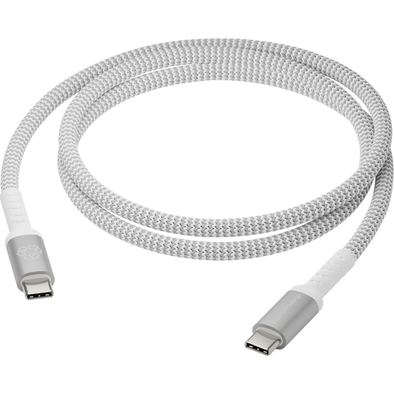 Punottu 100 W dbramante1928 re-charge Pro USB-C - USB-C -kaapeli auttaa sinua lataamaan tai synkronoimaan laitteesi turvallisesti, olitpa sitten kotona, töissä tai liikkeellä. Erittäin taipuvainen punottu kaapeli takaa pitkäaikaisen kestävyyden. Kaapeli on valmistettu 100-prosenttisesti kierrätetystä ja kierrätettävästä muovimateriaalista, ja se on yhteensopiva kaikkien USB-C-laturien kanssa.