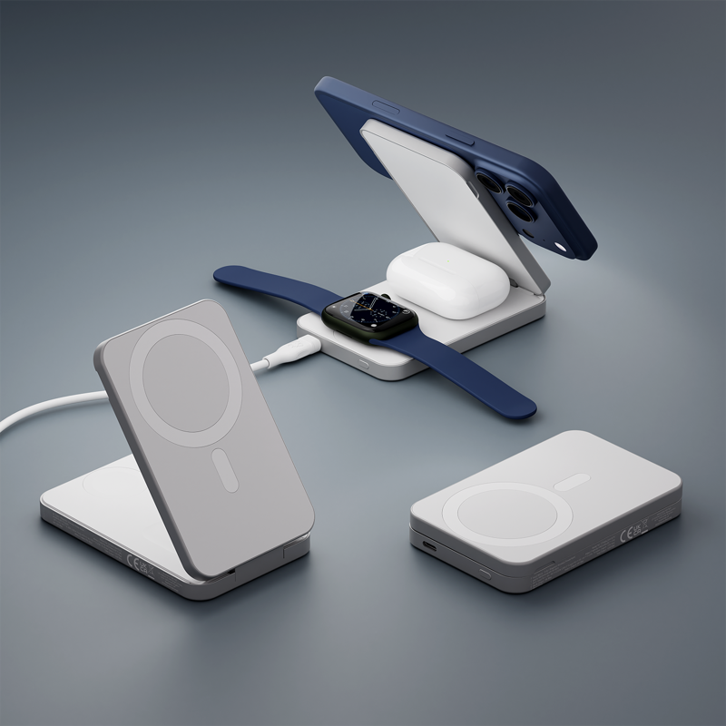Monipuolinen 4-in-1-rakenne yhdistää 3-in-1 lataustelineen ja varavirtalähteen vapauden – täydellinen kotiin, toimistolle tai matkalle. Kompakti ja taitettava muotoilu muuttuu taskuun mahtuvasta varavirtalähteestä vakaaksi lataustelineeksi ja toimii myös taitettuna.