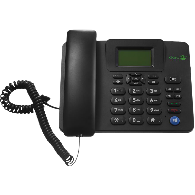 Doro 4100H on uudentyyppinen lankapuhelin kotiin, työpaikalle tai vaikka mökille. Se ei tarvitse lankapuhelinlinjaa, vaan toisin kuin perinteisissä lankapuhelimissa, laitteeseen asetetaan SIM- kortti, joka muodostaa yhteyden 2G-, 3G- ja erittäin nopeaan 4G LTE -matkapuhelinverkkoon. Tämän ansiosta voit myös lähettää ja vastaanottaa tekstiviestejä. Tämä malli on erinomainen valinta kotikäyttöön, mutta voit ottaa sen myös mukaan matkalle matkailuautoon, asuntovaunuun tai vaikkapa veneeseen. Tässä mallissa on helppokäyttöisyyttä lisäämään erilliset näppäimet suurilla, helposti luettavilla merkeillä. Lisäksi kaiutinpuhelin-ominaisuus mahdollistaa keskustelun käymisen askareiden ohessa. Puhelimeen voi lisäksi yhdistää langattomat Bluetooth-kuulokkeet langatonta käyttöä varten. Doro on erinomainen vaihtoehto seniorille tai lapsiperheen käyttöön, sillä sen avunpyyntöpainikkeeseen on mahdollista liittää jopa viisi yhteyshenkilöä, jotka voivat auttaa kun avun tarve iskee, ilman että tarvitsee muistella puhelinnumeroita.
