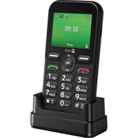 Doro Leva E11 puhelin, pöytälaturi, USB-kaapeli