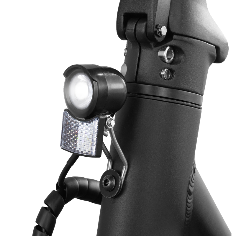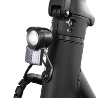 Lukitusrengas U- tai vaijerilukon turvallisempaan läpivientiin, kantokoukku esim. repun kannatteluun (max. 5kg), soittokello, hyvät heijastimet lisäävät näkyvyyttä pimeässä, E-ABS, tehokas ledvalo edessä, takajarru ledvalo ja tukijalka