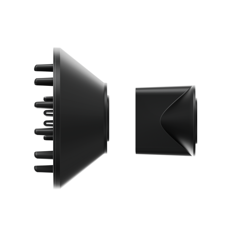 Diffuusori: Jakaa ilmavirran tasaisesti, korostaen kiharoita ja laineita sekä lisäten pehmeää volyymia ilman, että hiusten luonnollinen tekstuuri häiriintyy.