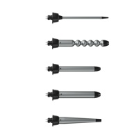 Kiharrin, ohut neliösauva 8x10 mm, pyöreä sauva Ø19, pyöreä sauva Ø25, kierteinen sauva Ø25, kartiosauva Ø13-25, säilytyspussi, sovitin