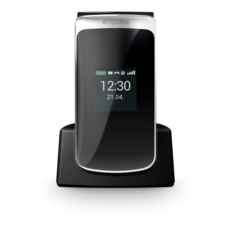 Emporia Touch Smart 2 4G puhelin, USB-C-kaapeli, laturipistoke, kuulokkeet, käyttöopas