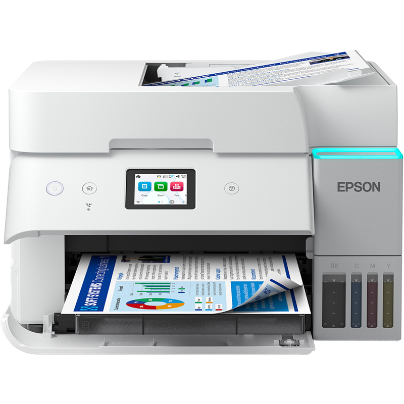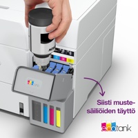 EcoTank on vaivaton ratkaisu koti- ja toimistotulostukseen – suurten mustesäiliöiden täyttö onnistuu helposti ja siististi, ja pullojen avainlukko varmistaa, että säiliöön lisätään vain oikean väristä mustetta. Etuosan mustetasomittarin ansiosta on helppo nähdä, milloin mustesäiliö on vihdoin täytettävä, ja mustesäiliön kannen päällä olevan tyylikkään sinisen valon ansiosta voit myös seurata tulostimesi tilaa yhdellä silmäyksellä.