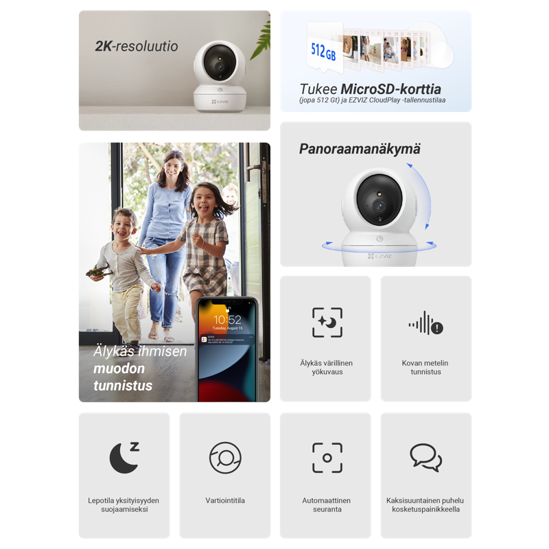 - Valvontakamera 2K-tarkkuudella – näe jokainen hetki todella terävästi ja tarkasti, suoraan sovelluksesta