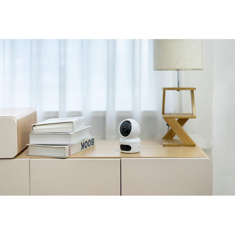 Koe vertaansa vailla oleva sisänäkyvyys EZVIZ H7c 2k+ Dual -valvontakameralla. Kaksi tehokasta objektiivia varmistaa kattavan peiton ylhäältä alas. Kamera tarjoaa koko huoneen kattavuuden, paremmin kuin koskaan ennen. Kamerassa on ihmisen liikkeentunnistus, kaksisuuntainen puhelutoiminto ja kristallinkirkas päivä-/yönäkymä. Kameran avulla voit olla yhteydessä kotiisi mistä tahansa, ja samalla se tuo lisäturvaa joustavien ominaisuuksiensa ansiosta.