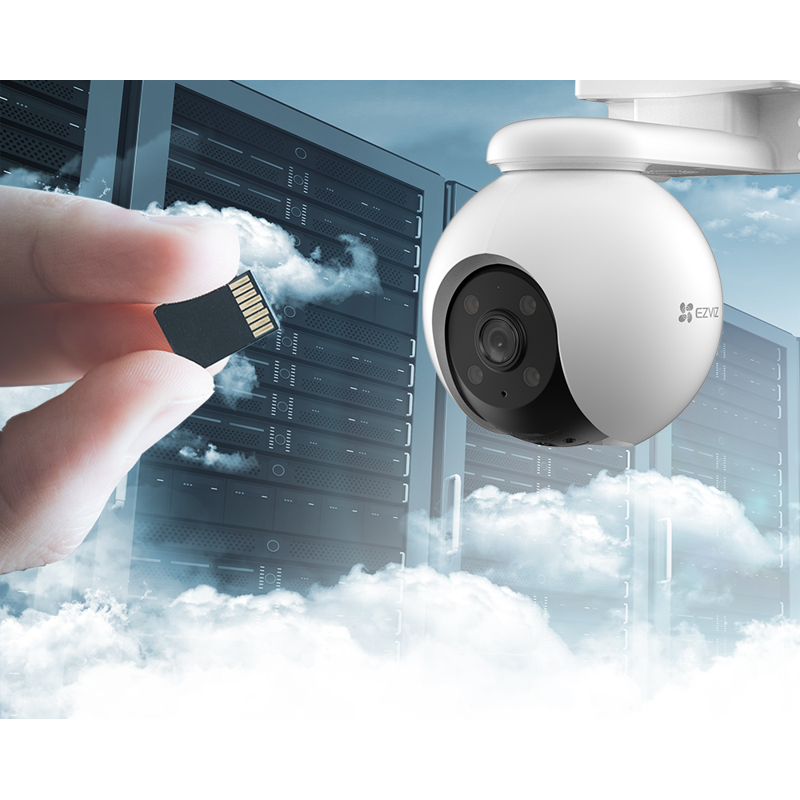 Kamera tukee jopa 512 Gt:n MicroSD-muistikorttia sekä EZVIZ CloudPlay Storage -palvelua.