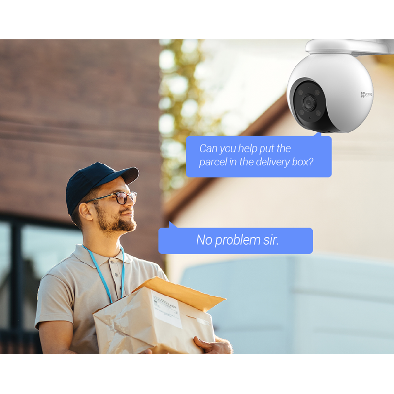 Oletko huolissasi toimitettavista paketeista tai kutsumattomista vieraista, kun olet poissa kotoa? EZVIZ H8 Pro 2K:lla voit katsella ja kuunnella sekä puhua älypuhelimeesi asennettavan EZVIZ-sovelluksen avulla kiinteistösi alueelle saapuville vieraille.