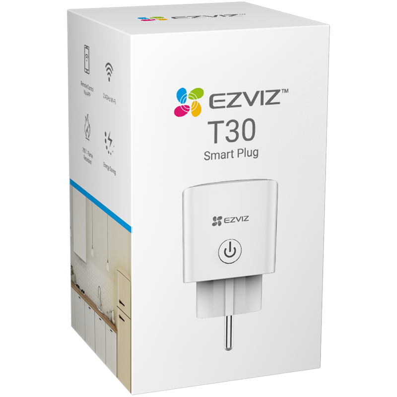 Kompaktin EZVIZ T30 -älypistorasian avulla voit ohjata helposti kotisi eri sähkölaitteita. Suoraan WiFiin yhdistyvä älypistorasia tekee eri laitteidesi hallinnasta mahdollista täysin etänä. Kytke laitteesi päälle ja pois, vaikka et olisi itse kotona. Lisäksi pistorasian avulla voit asettaa laitteet toimimaan tietyn aikataulun mukaan, jota voit itse tehdä säätää ja muokata. Voit tehdä erilaisia ajastuksia, käyttää laskuritoimintoa. T30-älypistokkeen avulla muutat tavallisetkin laitteet älykkäiksi. EZVIZ T30 -älypistorasia on käytettävissä +0–40 asteen lämpötiloissa.