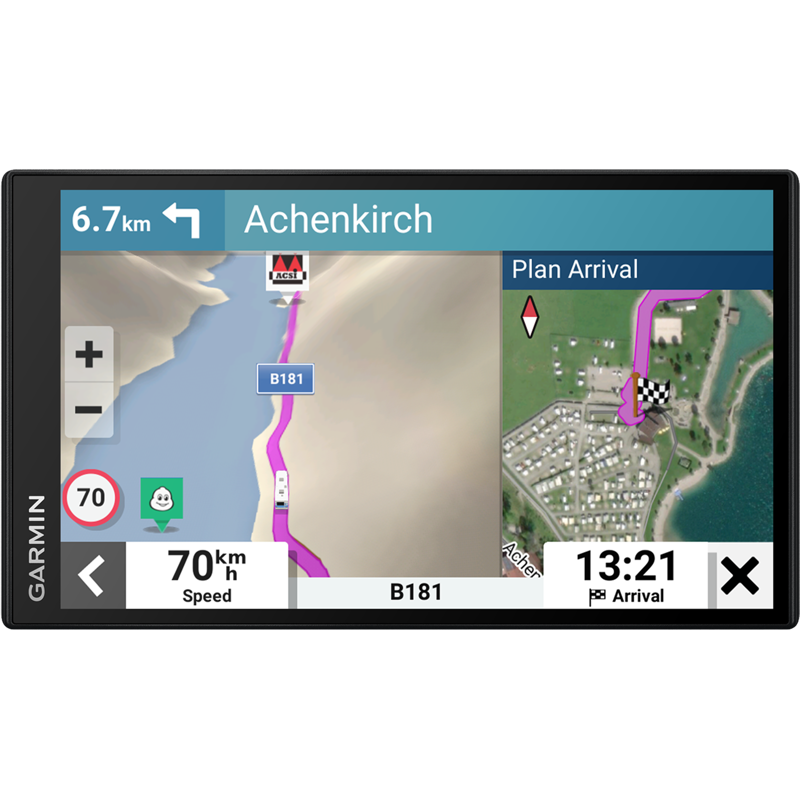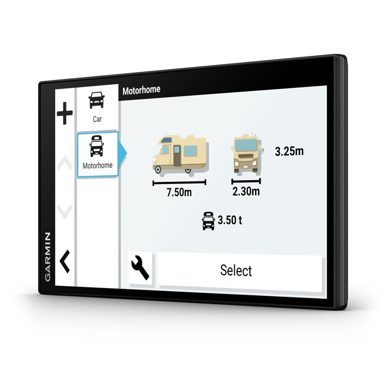Mukautettu reititys ja varoitukset: Mukautettu matkailuajoneuvoreititys matkailuauton tai asuntovaunun mittojen ja painon mukaan. Laite varoittaa edessä olevista matalista silloista, painorajoituksista, tiukoista mutkista, jyrkistä nousuista, jne.