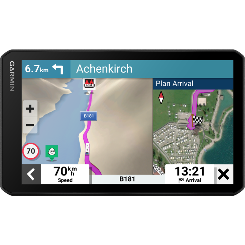 Garmin CamperCam 795 -matkailuautonavigaattori auttaa luomaan ihania muistoja. Käytettävissäsi on mukautettu reititys matkailuajoneuvosi mittojen ja painon mukaan sekä varoitukset edessä olevista tiukoista mutkista, jyrkistä nousuista, jne. Laitteessa on leirintäalue- ja palveluhakemisto, jotta matka sujuisi mukavasti. Paikallisia vierailukohteita ja määränpään lähellä sijaitsevia mielenkiintoisia aktiviteetteja koskevat suositukset tarjoavat seikkailuja matkan varrelle. BirdsEye-satelliittikuvissa näet tarkan lintuperspektiivikuvan kohteesta, esim. matkaparkit ja leirintäalueet, mikä helpottaa perille saapumista.
