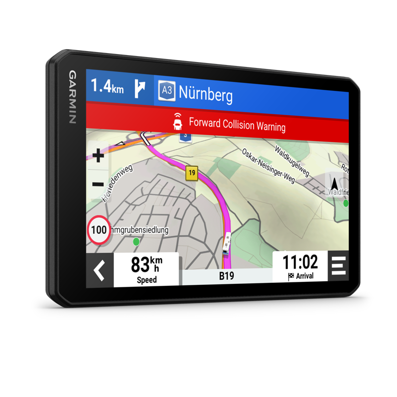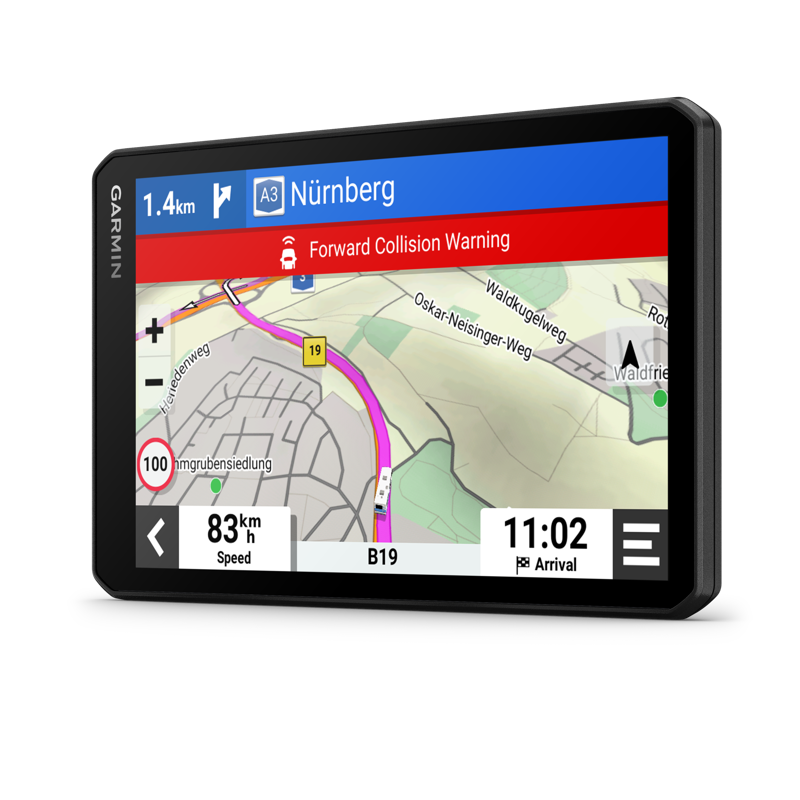 Etutörmäysvaroitin ja kaistavahti: Kuljettajan tilannetietoisuuden parantamiseksi laite varoittaa, jos ajetaan liian lähellä edessä ajavaa tai jos ajoneuvo on ajautumassa pois tieltä tai vastaantulijoiden kaistalle. Tietyt olosuhteet saattavat heikentää varoitustoimintoa; lisätietoja: Garmin.com/warnings.