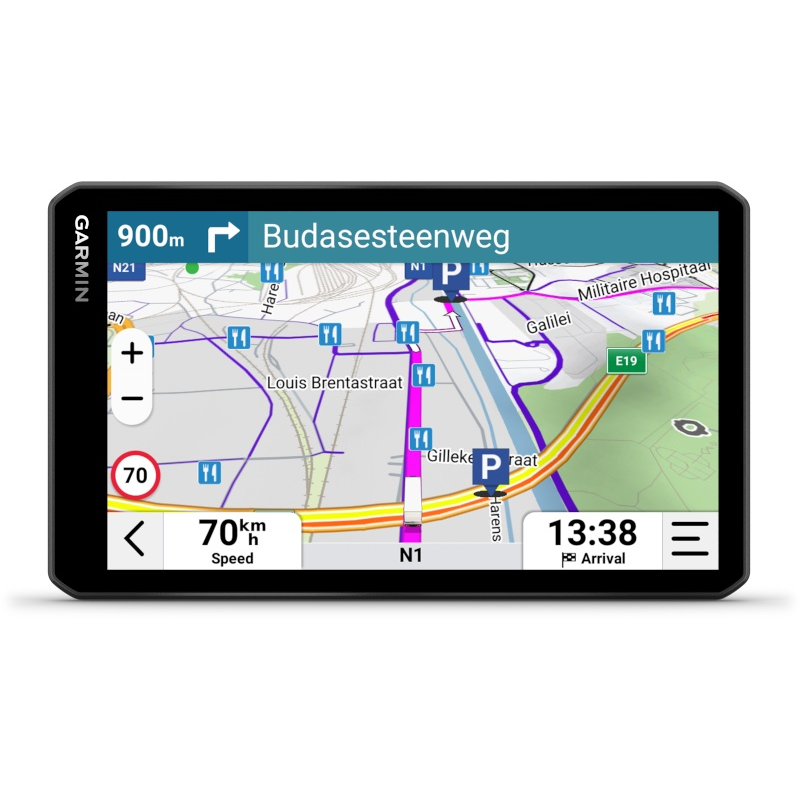 7" dēzl™ LGV720 -navigaattori tarjoaa kuljettajille luotettavia navigointiominaisuuksia, kuten tuhansilta ammattikuljettajilta saatuja dēzl-yhteisön vinkkejä, joiden avulla löydät rekkakuskien arvioimia pysäköintipaikkoja, yhteisön jakamia lastauslaitureita ja muita suosittuja rekkakohteita. Uusi kartassa näkyvä sään peittokuva tuulen nopeudesta sekä varoitukset edessäpäin olevista jyrkistä mutkista ja siltojen korkeuksista varoittavat mahdollisesti vaarallisista olosuhteista reitillä. Yksityiskohtaiset kartat sisältävät mukautetun rekkareitityksen ajoneuvon koon ja painon mukaan. Lisäksi varoitukset ympäristövyöhykkeistä auttavat valitsemaan optimaaliset reitit. Voit hakea paikkoja tai koordinaatteja helposti älypuhelimella ja lähettää ne dēzl™-sovelluksella dēzl-laitteeseesi navigointia varten. Määränpään tarkat ilmakuvat helpottavat saapumista esimerkiksi turvaporteille ja rekkalaitureille. Voit lisätä varmuutta pariliittämällä dēzl™ LGV -navigaattoriin langattoman BC™ 50 -peruutuskameran (myydään erikseen), jolla näet ajoneuvosi taakse.