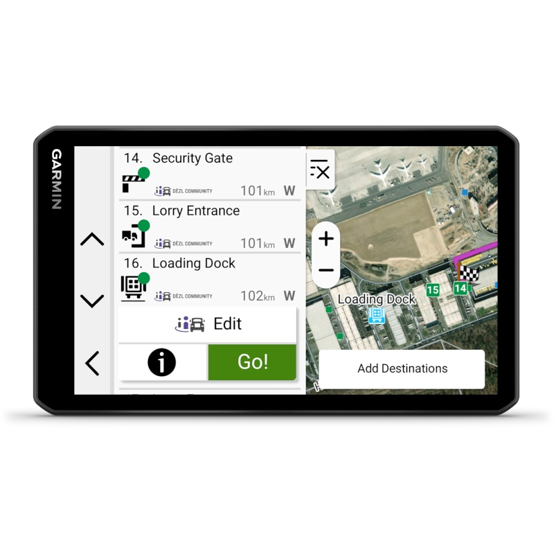- 7" dēzl LGV1020 -navigaattori tarjoaa kuljettajille luotettavia navigointiominaisuuksia, kuten tuhansilta ammattikuljettajilta saatuja dēzl-yhteisön vinkkejä