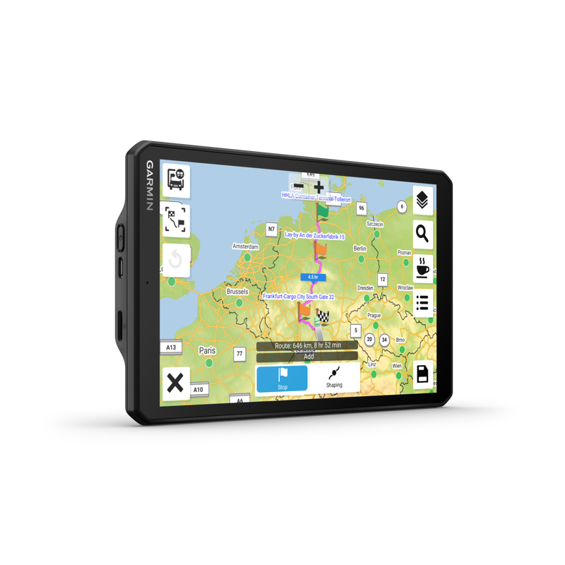 - dēzl-rekkanavigaattorin 8" kosketusnäyttö tekee raskaalla ajoneuvolla liikkumisesta yksinkertaisempaa