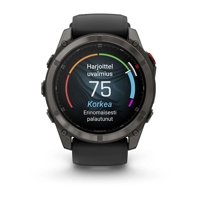 Kattavuus rajallinen tai ei kattavuutta maassa Suomi. Edellyttää aktiivista tilausta; LTE- ja satelliittiyhteydet eivät ole käytettävissä kaikissa maissa. Kattavuus voi vaihdella alueen mukaan, ja rakennukset, puut ja sääolosuhteet voivat vaikuttaa siihen. Tarkista alueellasi tai matkakohteessasi käytettävissä olevat palvelut osoitteesta Garmin.com/fenix8procoverage. Satelliittiviestintälaitteiden käyttö on säädeltyä tai kiellettyä joillakin hallintoalueilla. On käyttäjän vastuulla tuntea sovellettavat lait laitteen käyttöalueilla ja noudattaa niitä.