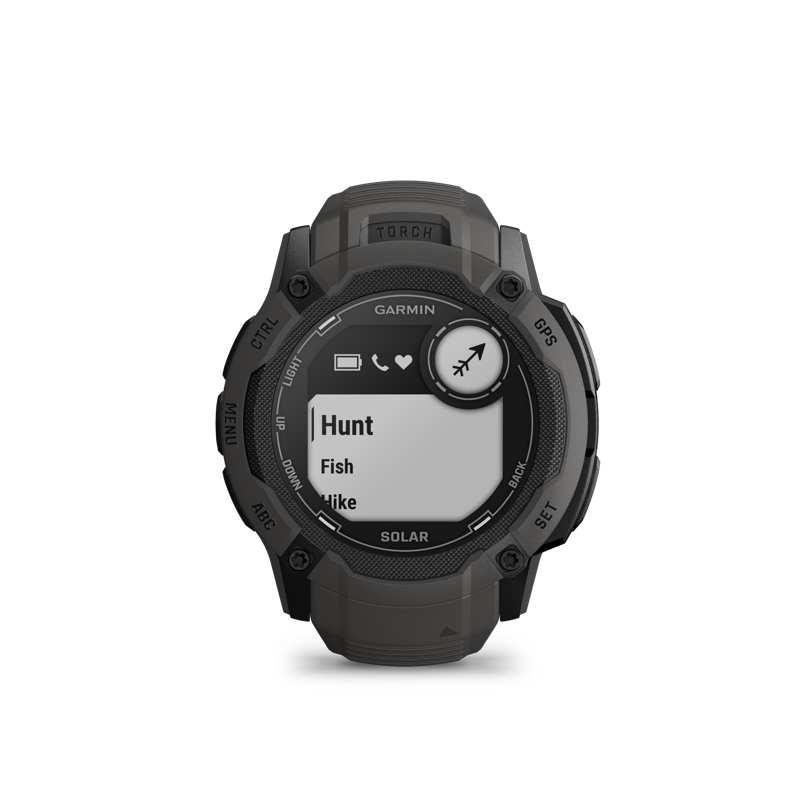 Garmin Instinct 2X Solar -kellon aurinkolataus takaa rajattoman akun keston älykellotilassa, kun kello altistuu 3 tunnin ajan suoralle auringonvalolle (50 000 luksia) päivässä. Akun kesto normaalissa älykello-tilassa on jopa 40 päivää. Kun aurinko laskee, kellon sisäinen LED-taskulamppu pitää sinut näkyvissä. Monikaistaisen GNSS-tekniikan tuki tarkentaa paikannusta haastavissa ympäristöissä.