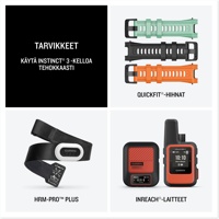 Instinct 3 -älykello, jossa silikonihihna, lataus-/datakaapeli, oppaat