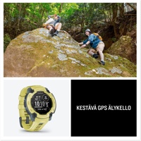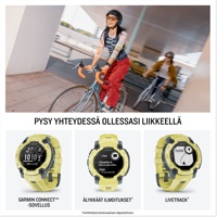 Instinct® E on erittäin luja älykello, jonka akunkesto on jopa 16 päivää. Siinä on keskeiset ominaisuudet, kuten älykkäät ilmoitukset ja Connect IQ™ -kaupan tuki. Lisäksi siinä on ympärivuorokautinen terveyden ja hyvinvoinnin seuranta, johon kuuluvat mm. rannesykemittaus, edistynyt unen seuranta ja pulssioksimetri. Instinct E kestää kovimmissakin seikkailuissa lujan rakenteen ja sariirilasin ansiosta. Sillä on MIL-STD-810-standardien mukainen lämmön- ja iskunkestävyys, ja sen vesitiiviysluokitus on 10 ATM. Sen kolmiakselinen kompassi, barometrinen korkeusmittari ja usean GNSS-järjestelmän tuki pitävät sinut reitillä matkapuhelinverkon ulkopuolella.