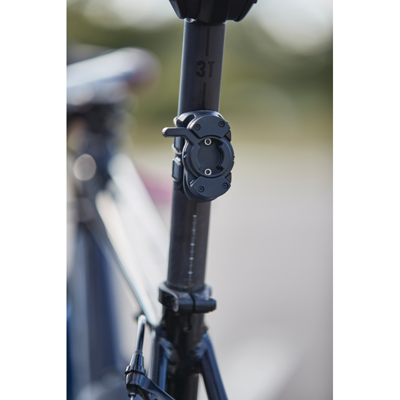 Pienen koonsa ansiosta Varia RCT716 -takatutka on helppo kiinnittää lähes minkä tahansa pyörän satulan tankoon. Pystysuuntaisen muodon ansiosta laite ei häiritse jalkojen liikettä.