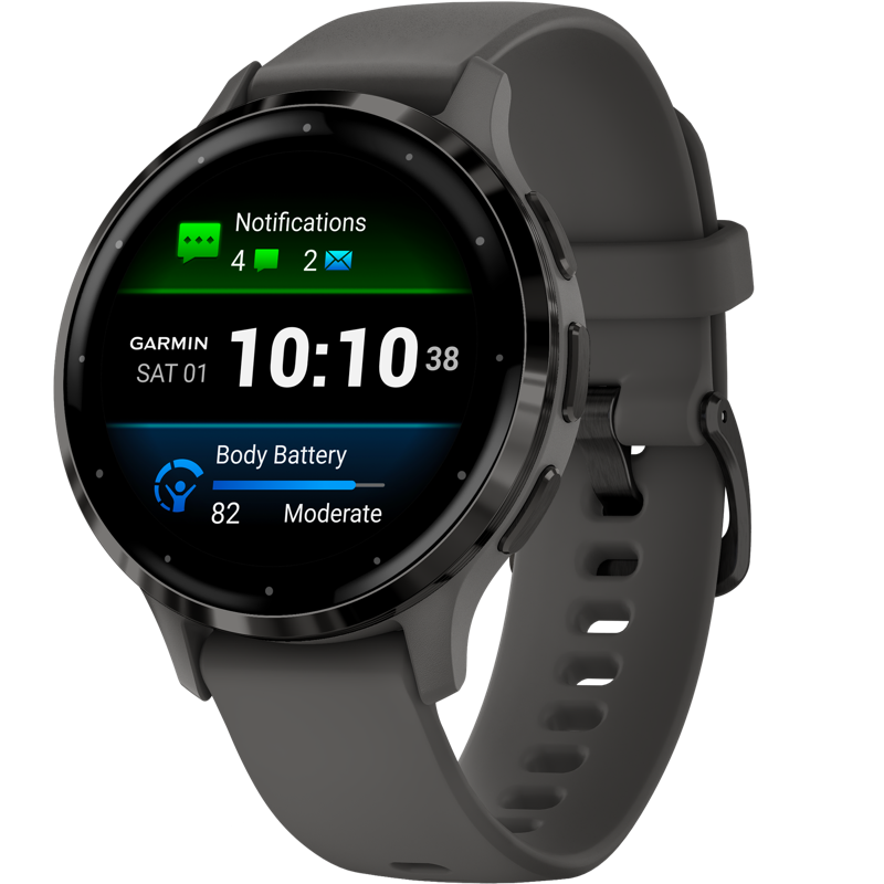 Tunne itsesi ja seuraa hyvinvointiasi Venu 3S -älykellon ansiosta. Saat käyttöösi laadukkaat valmentajat, jotka on suunniteltu tukemaan tavoitteitasi – kaikilla tasoilla. 1,2” näyttö on kirkas ja värikäs, minkä lisäksi kellon akun kesto on jopa 10 päivää. Garmin Venu 3S GPS-älykellossa on edistykselliset hyvinvointi- ja kuntoiluominaisuudet, jotka parantavat ymmärrystäsi kehostasi. Body Battery -energianseurannalla voit tarkkailla energiatasoasi, ja saat henkilökohtaista tietoa esimerkiksi unen, stressin ja harjoitusten perusteella.