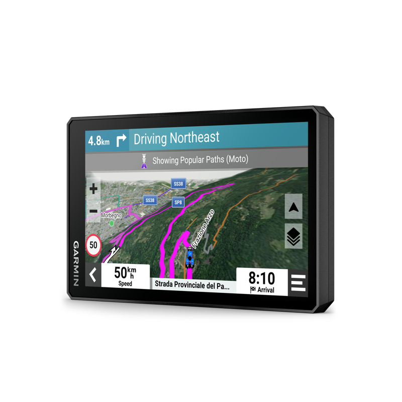 Laitteessa on suositut moottoripyöräreitit, MICHELIN Scenic Roads -maisemareitit ja satelliittikuvat, joiden avulla voi löytää uusia kohteita. Ajon jälkeen voit jakaa ajoretken tiedot, mm. kiihdytykset ja jarrutukset.