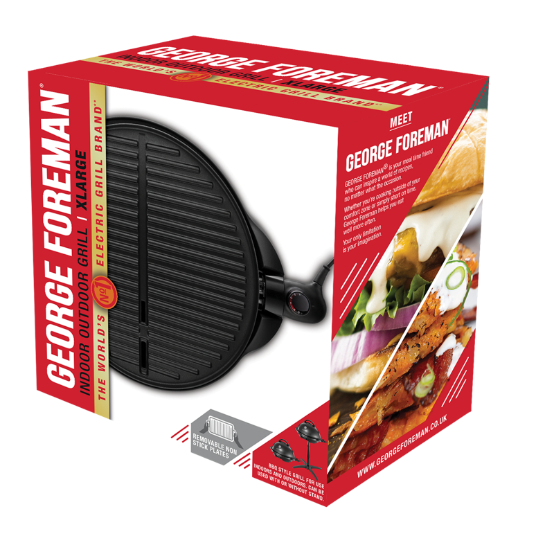 Grilli on suunniteltu erityisesti terveellisempää ruoanlaittoa varten: rasva ohjautuu erilliseen rasvankeräysastiaan, joka on helppo irrottaa ja puhdistaa. George Foreman ‑grilliä voi käyttää pöytägrillinä tai ulkona omalla jalustallaan – joustavuutta kaikkiin tilanteisiin.