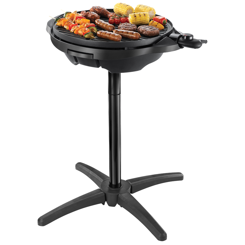 - Monikäyttöinen sähkögrilli sisä‑ ja ulkokäyttöön jalustalla tai pöytägrillinä
