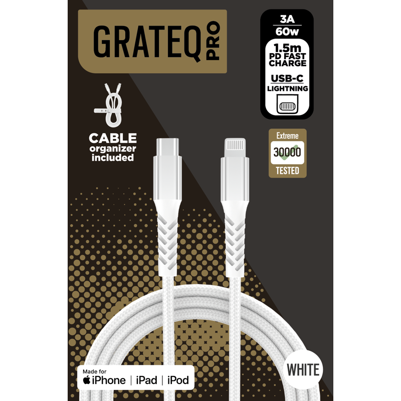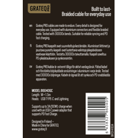 Grateq PRO -kaapelit ovat suunniteltuja kestämään. Alumiiniset liittimet ja joustava punottu kaapeli ovat luotettavia valintoja jokapäiväiseen vaativaan käyttöön. Testattu 30 000 kertaa taivuttamalla. Kaapeli soveltuu PD-pikalataukseen ja synkronointiin.