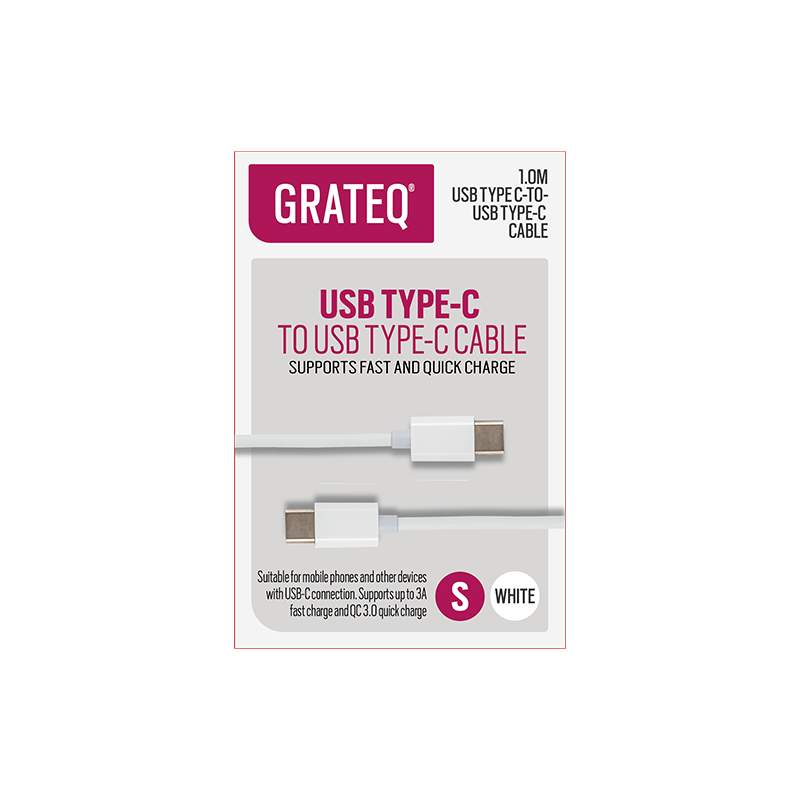 Grateq pikalatauskaapelilla saat hyödynnettyä kaikkien pikalatureiden tuottaman virran. Piuhassa on USB-C-liittimet kummassakin päässä. Kaapeli on saatavilla kahdessa eri pituudessa.