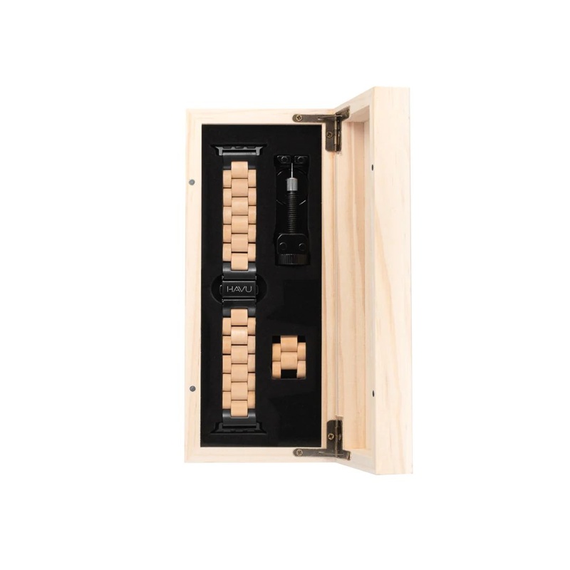 Havun Apple Watch -yhteensopiva puinen ranneke tuo miellyttävän tuntuman ja tyylikkään modernin ulkonäön Apple Watch -kelloosi. Miellyttävä puu tuntuu mukavalta ihoa vasten, koska se ei hiosta eikä tunnu kylmältä. Puinen ranneke on myös allergiavapaampi kuin metallinen tai silikoninen ranneke.